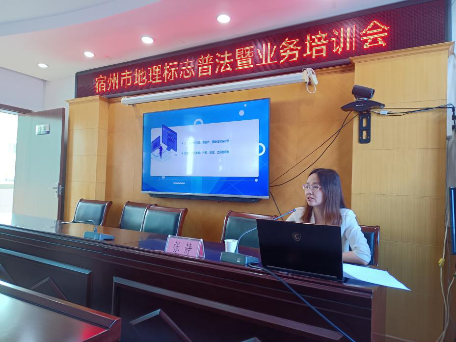 为进一步推进知识产权普法,加强地理标志产品和地理标志证明商标的保护力度,推动地理标志相关产业持续发展,10月14日,在宿州市埇桥区市场监管局举办宿州市地理标志普法暨地理标志品牌培育保护运用培训会。辖区地理标志专用标志使用企业及培育企业相关负责人参会。培训会邀请了安徽省知识产权保护中心商标品牌指导站业务负责人、安徽省信达商标事务有限责任公司副总经理张静进行了专题授课。