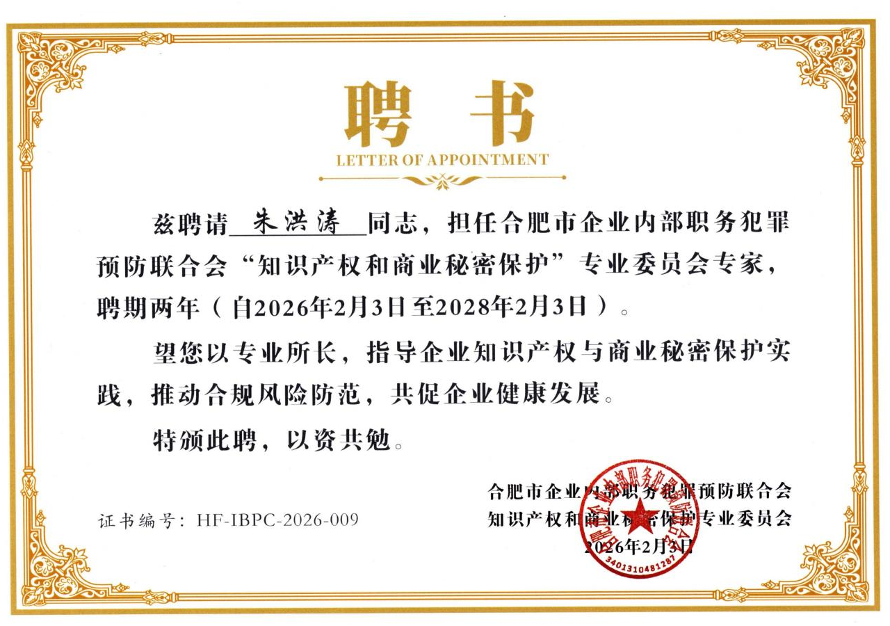 安徽省信达商标事务有限责任公司董事长朱洪涛受聘担任专委会首批专家委员。专委会首批专家智库由12位来自司法侦查、检察公诉、行政执法、企业风控等一线的顶尖人才组成,他们将以专业视角深度参与企业知识产权合规建设、典型案例研讨及风险预警机制构建,为企业筑牢商业秘密“防火墙”。