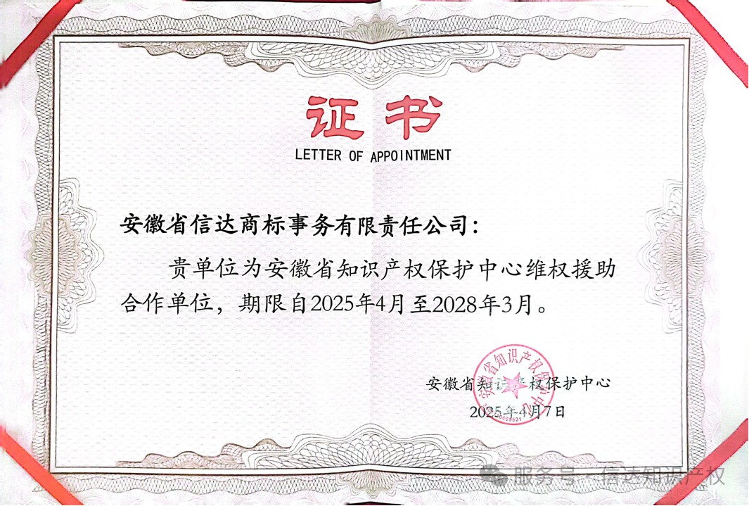 2025年,公司入选“中华商标协会人才与教育专业委员会”委员单位,也是安徽省首位且唯一入选单位;连续三年被中华商标协会评为安徽唯一全国“5a级商标代理机构”(top100);被安徽省市场监督管理局和安徽省消费者权益保护工作联席会议办公室评为“安徽省放心消费优秀单位”;被安徽省知识产权保护中心认定为“安徽省知识产权保护中心维权援助合作单位”;被安徽省中小企业协会评为“安徽省服务中小企业高质量发展重点服务机构”。