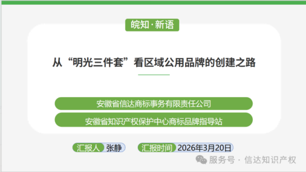 为充分发挥区域公用品牌的集聚效应与辐射带动作用,提升区域公用品牌运营能力,3月20日安徽省知识产权保护中心“皖知·新语”知识产权公益讲堂开讲, 中心商标品牌指导站业务负责人、安徽省信达商标事务有限责任公司张静副总经理围绕区域公用品牌的创建,进行专题授课。